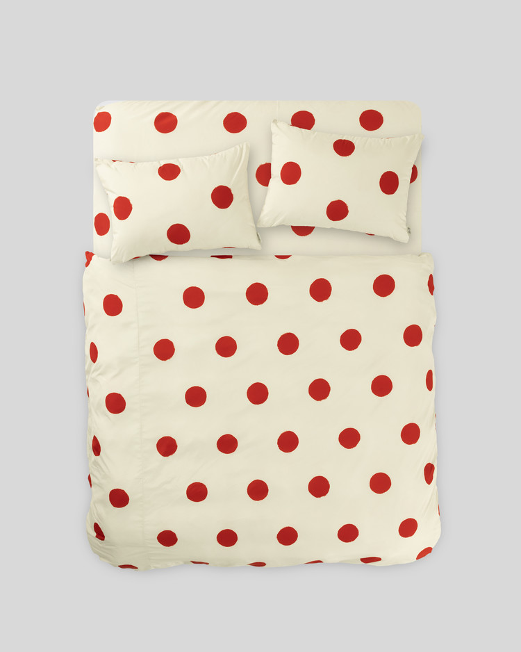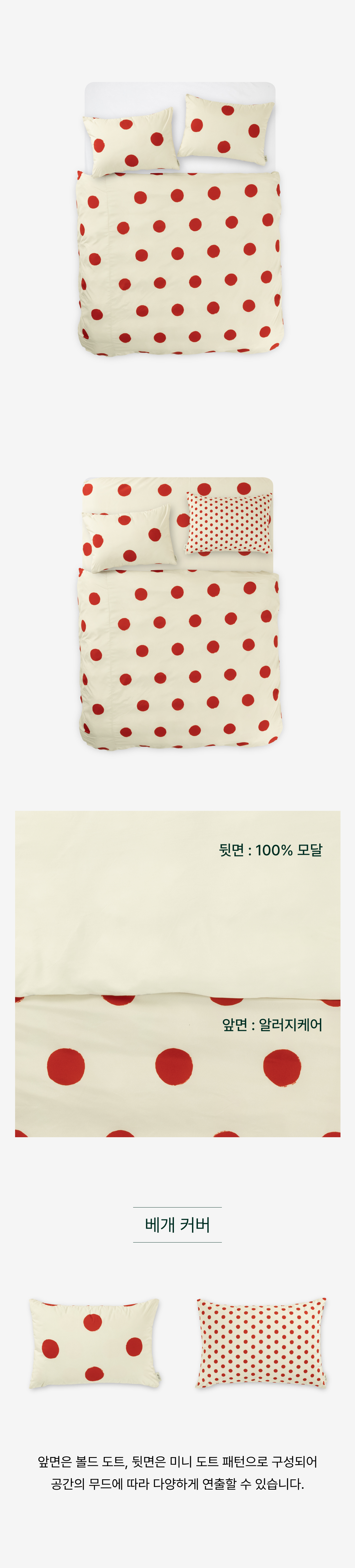 퍼 프리 모달 볼드 도트 이불 커버_레드/베이지