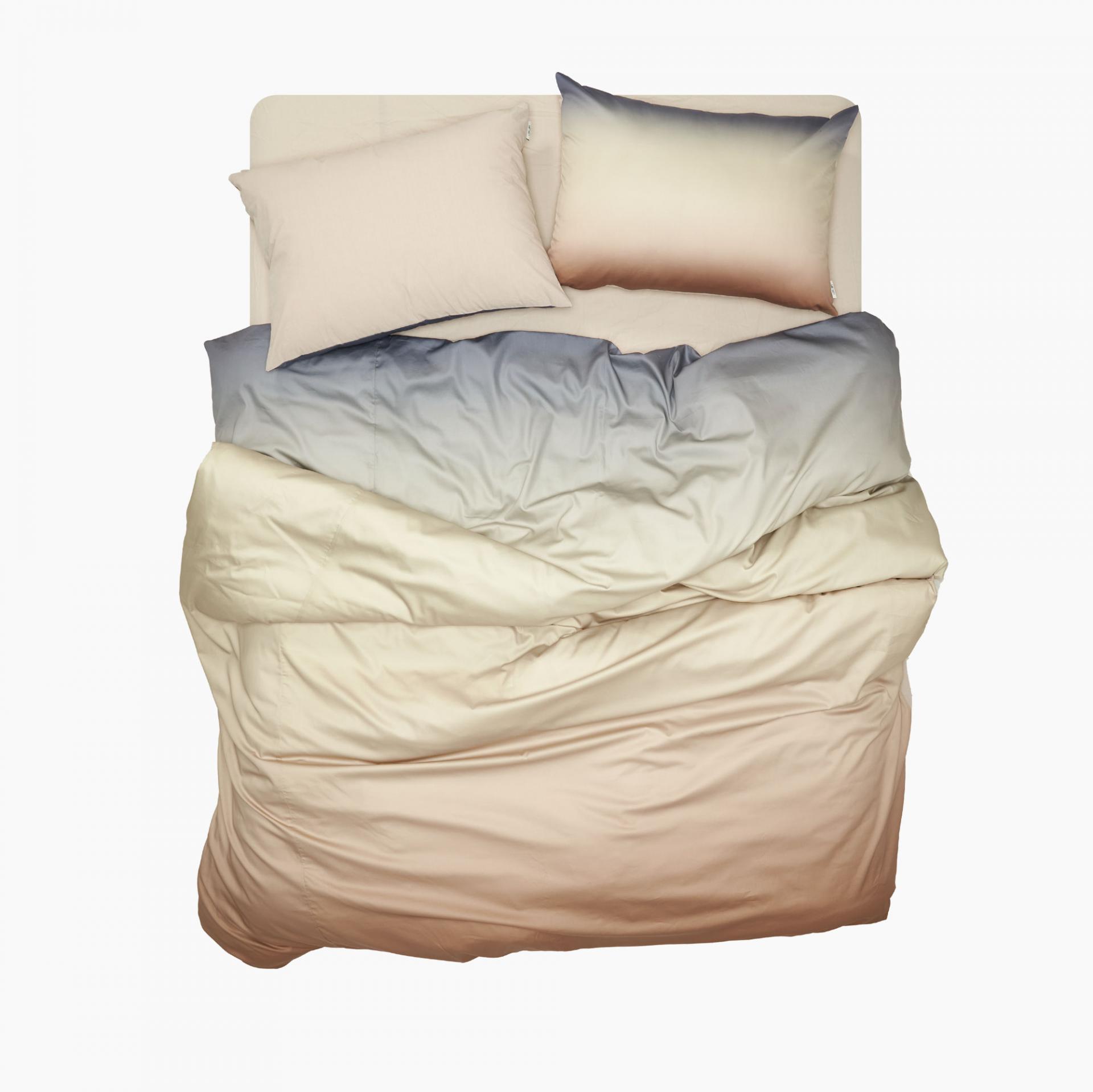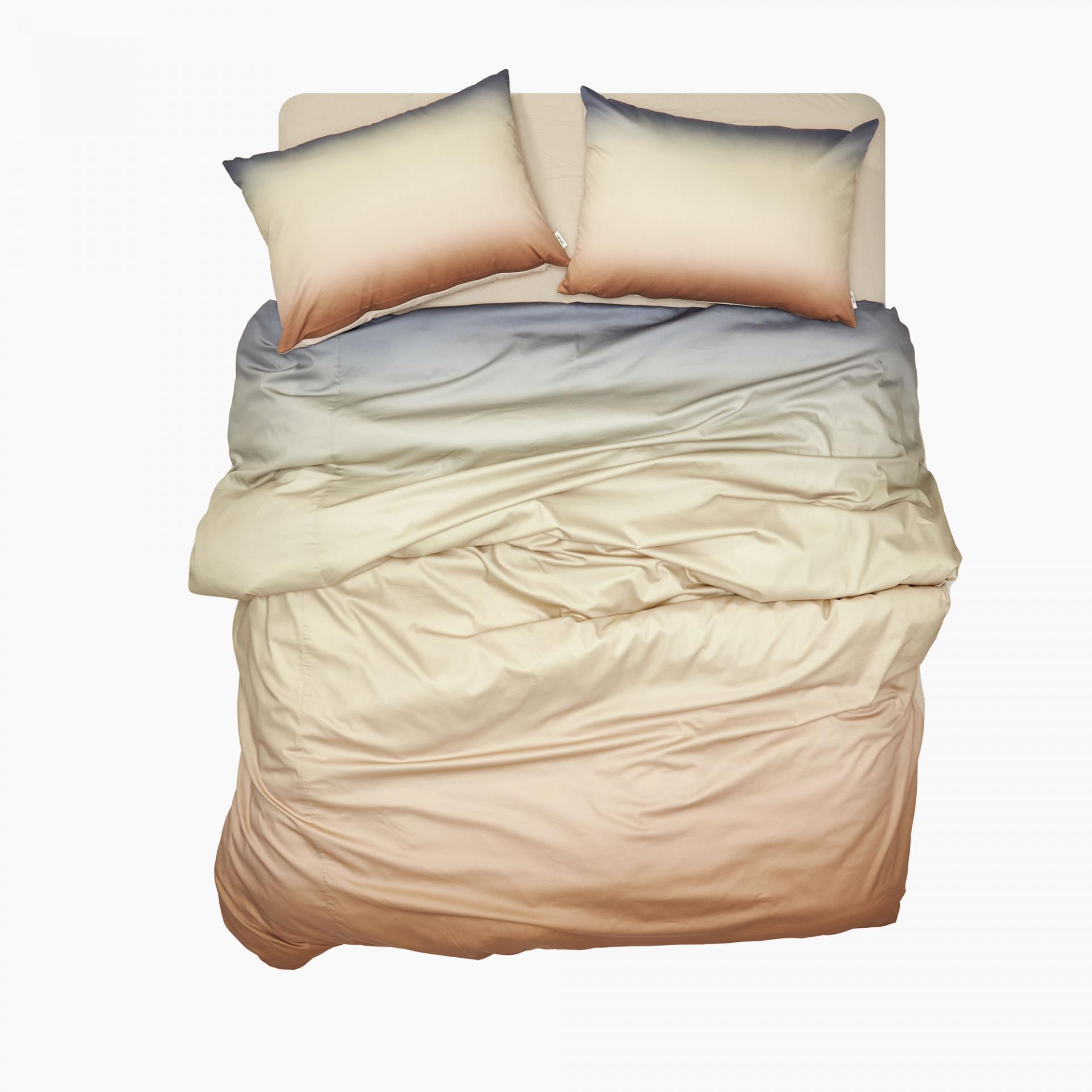 오전 7시의 해가 뜨는 순간을 그라데이션으로 표현한 침구입니다. 해가 뜨기 시작하면서 비추는 금빛 컬러와 여전히 남아있는 새벽녘의 짙은 그레이 빛의 하늘을 담았습니다. 그라데이션은 고밀도 60수 새틴과 고밀도 바이오 워싱면 60수로 제작되어 부드럽고 사각사각한 텍스처를 동시에 느끼실 수 있습니다.