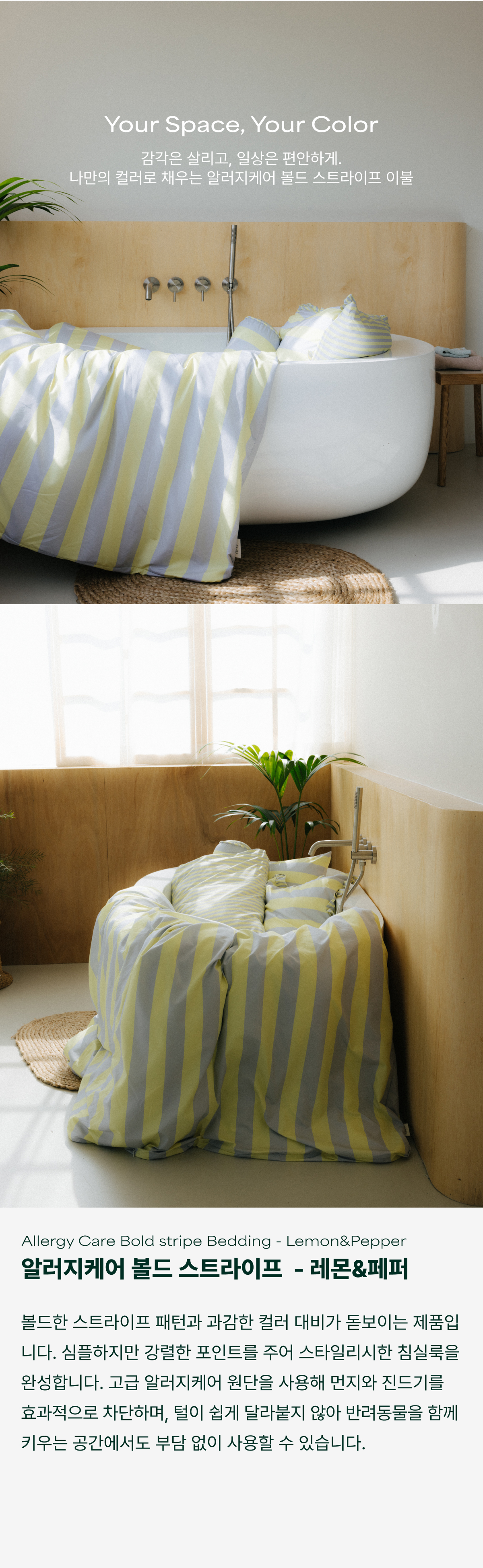 알러지케어 볼드 스트라이프 베개 커버_Lemon&Pepper - 3종