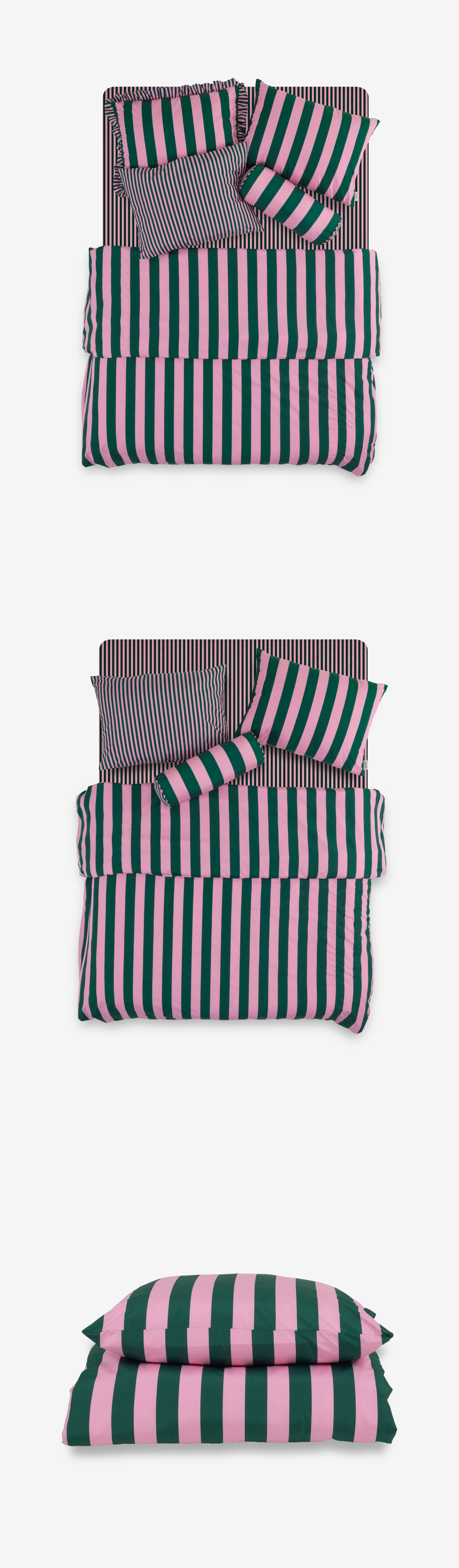 알러지케어 볼드 스트라이프 이불 커버_Bubblegum&Pine K