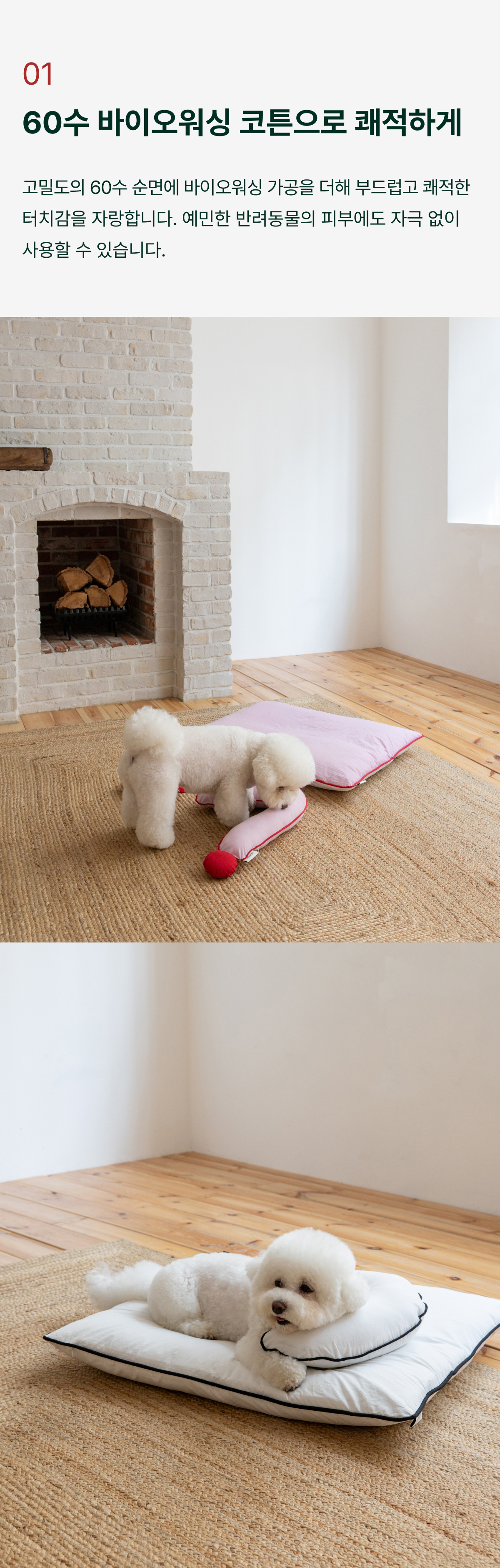 부드럽고 쾌적한 촉감의 60수 바이오 워싱면을 사용한 펫 쿠션입니다.