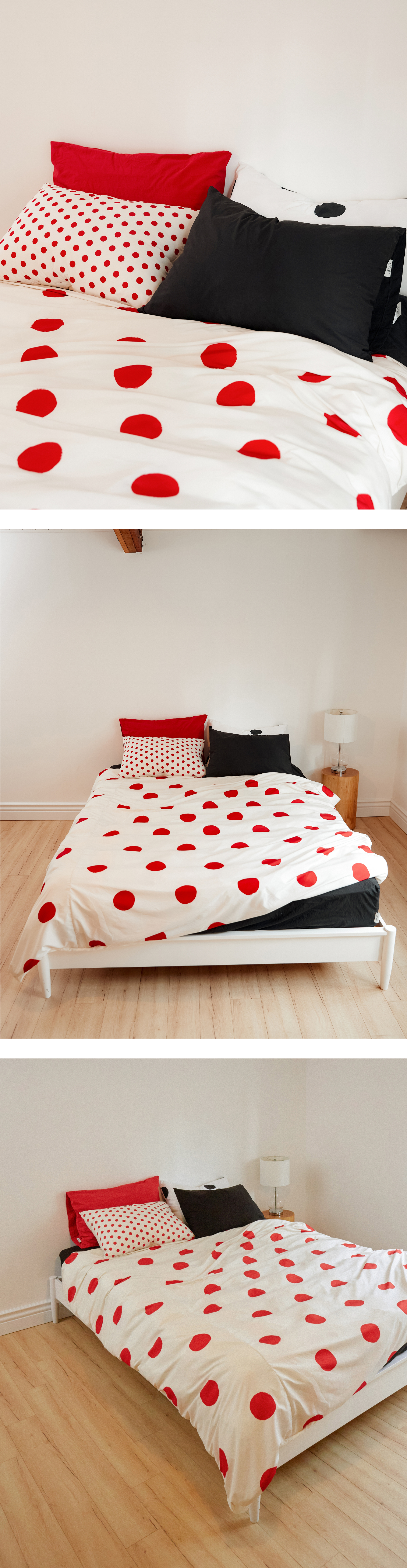 볼드 도트 이불은 도톰하게 찍어낸 듯한 입체감 있는 패턴이 공간에 포인트를 더합니다. 컬러와 텍스처를 자유롭게 레이어링해 나만의 감각적인 무드를 완성해보세요.
