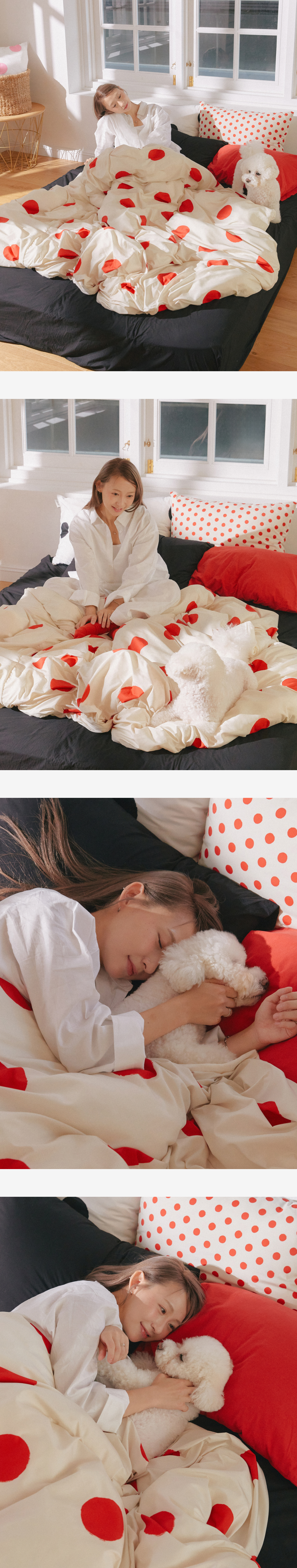 퍼 프리 볼드 도트 베개 커버_레드/베이지