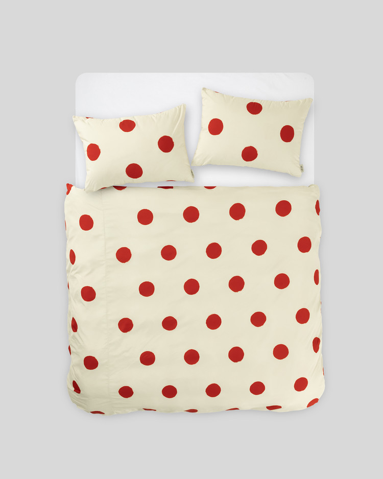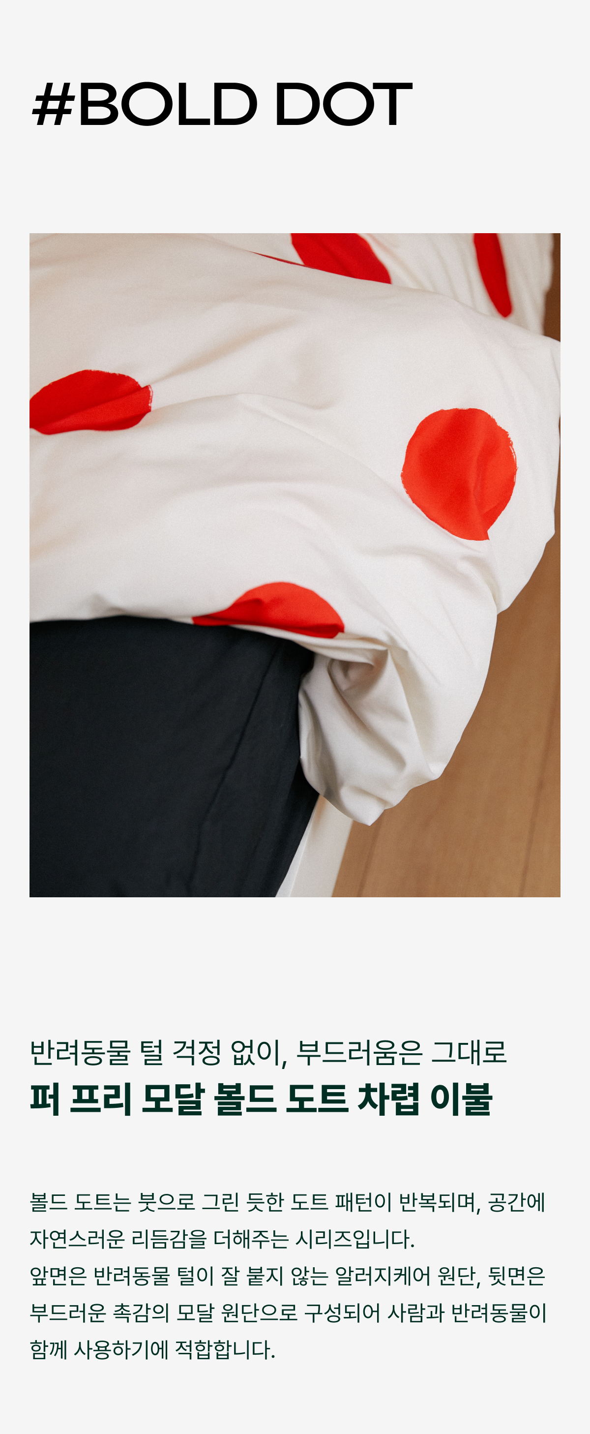 볼드 도트 이불은 도톰하게 찍어낸 듯한 입체감 있는 패턴이 공간에 포인트를 더합니다. 컬러와 텍스처를 자유롭게 레이어링해 나만의 감각적인 무드를 완성해보세요.