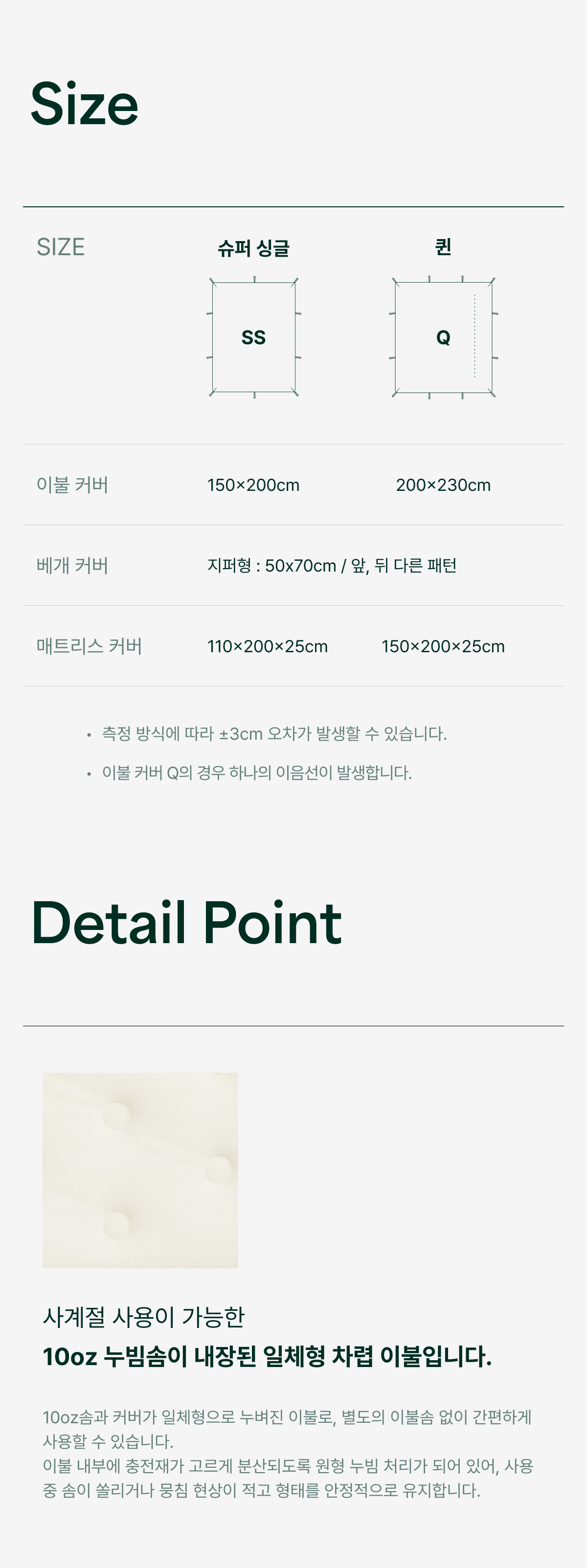 - 10oz 누빔솜이 내장된 일체형 차렵 이불입니다.