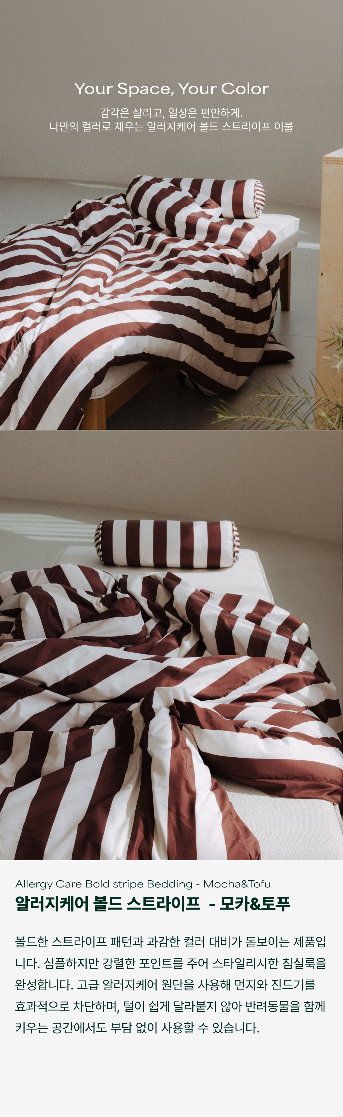 알러지케어 볼드 스트라이프 차렵 이불_Mocha&Tofu