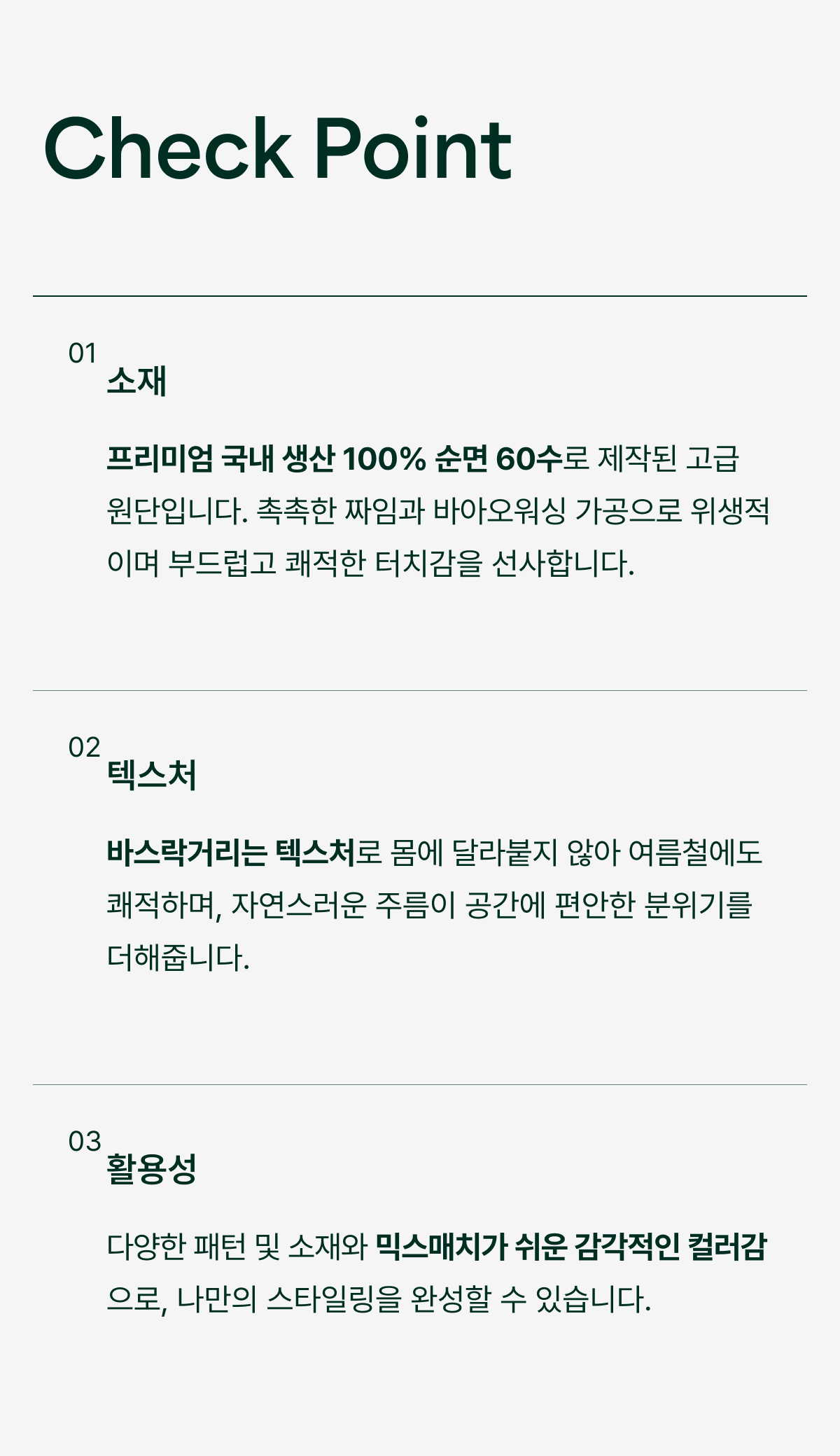 - 국내 생산 60수 고밀도 바이오 워싱면