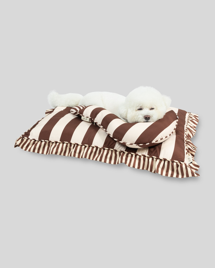 퍼 프리 볼드 스트라이프 물음표 쿠션(솜 포함)_Mocha&Tofu