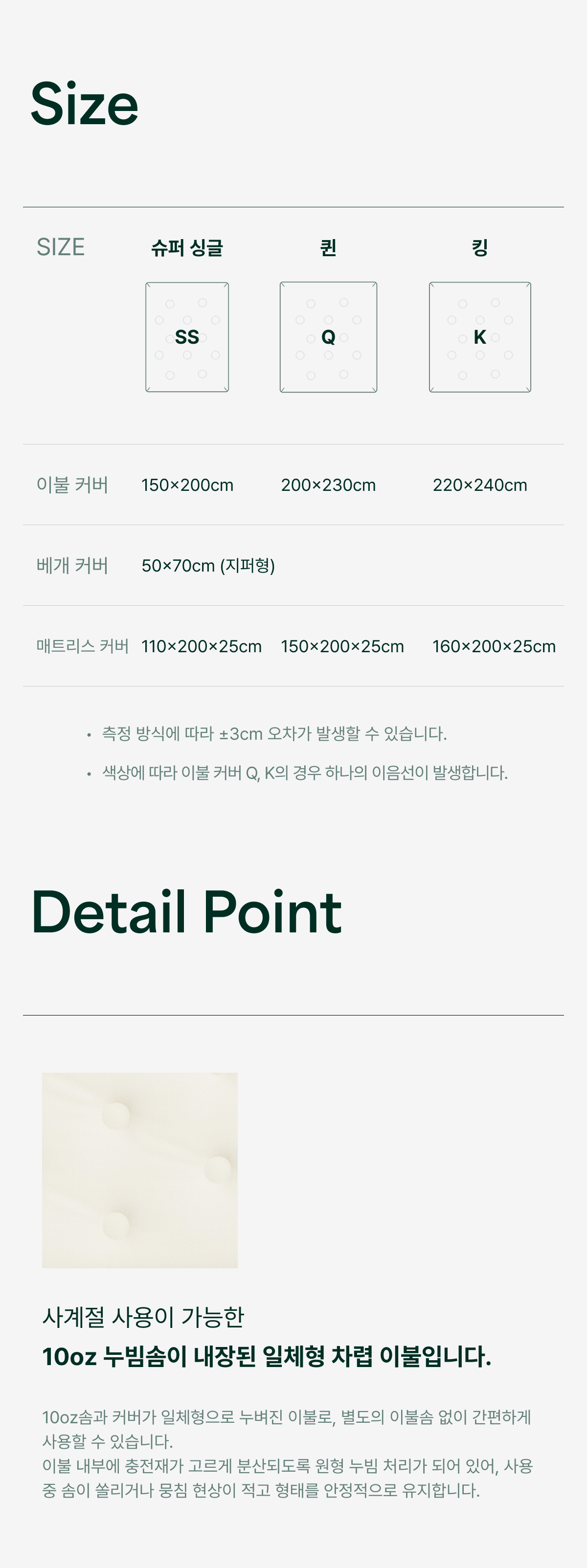 - 10oz 누빔솜이 내장된 일체형 차렵 이불입니다.