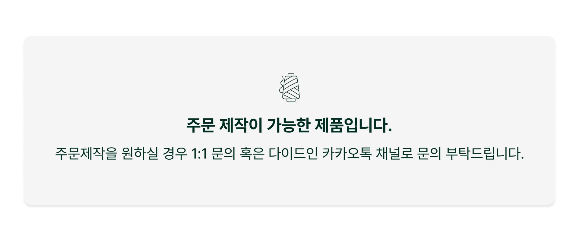 주문 제작이 필요할 시, 주문 확인 후 영업일 기준 7-10일 소요됩니다.
