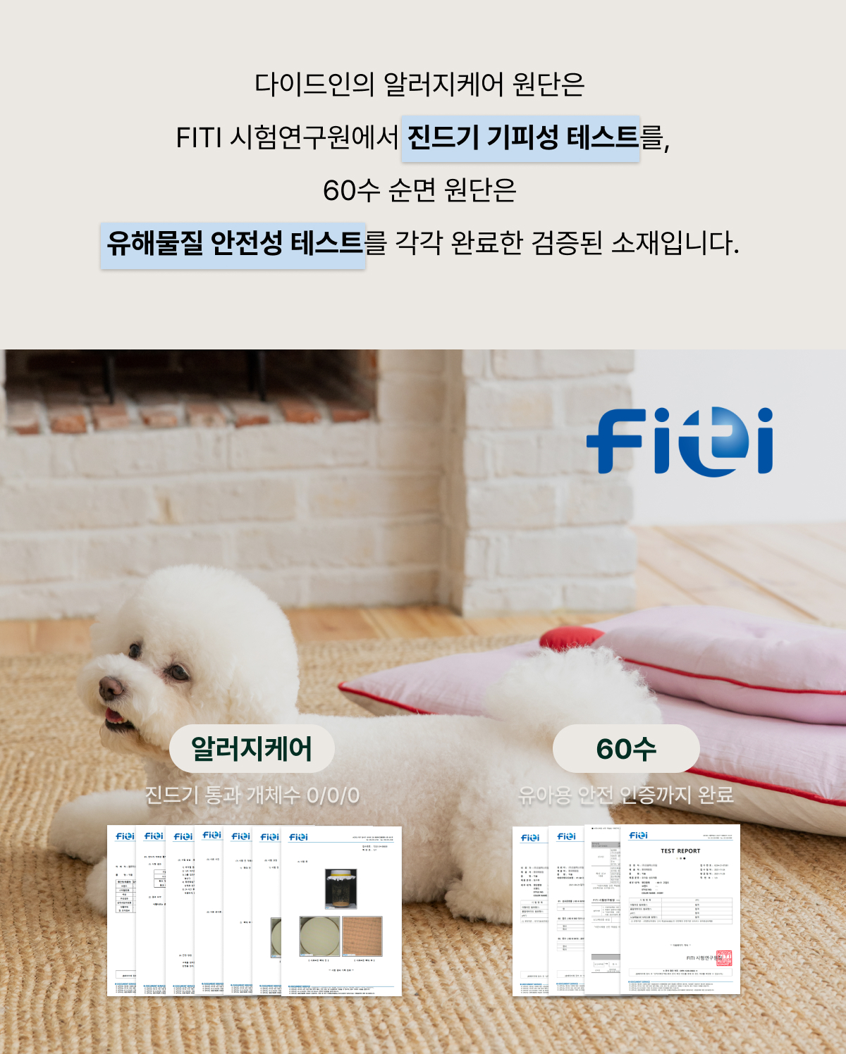- 펫 쿠션 충전재 겉감 방수원단 사용
