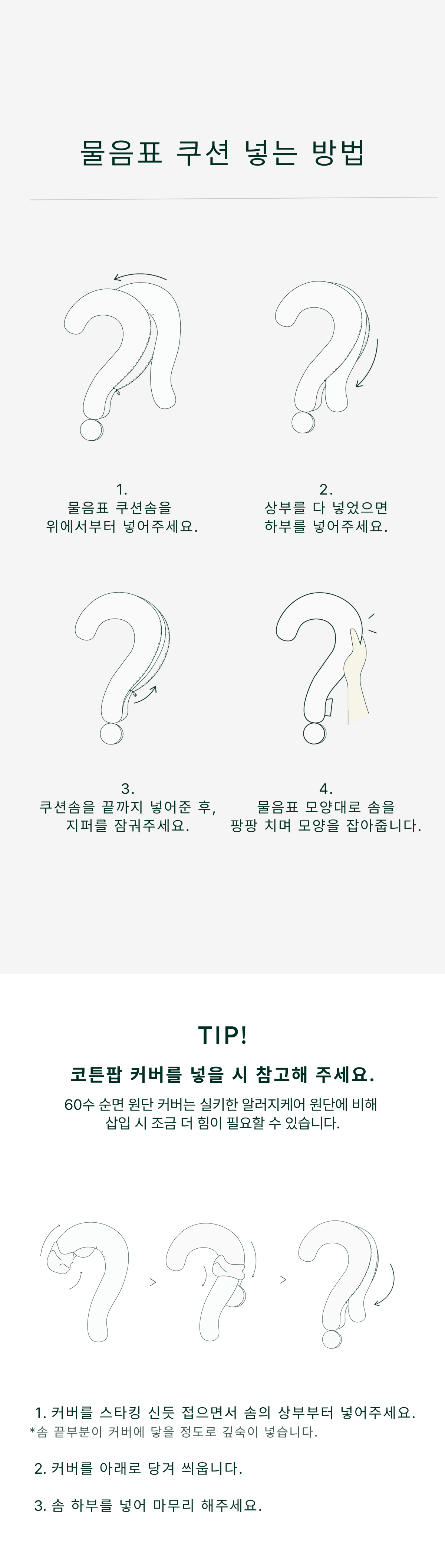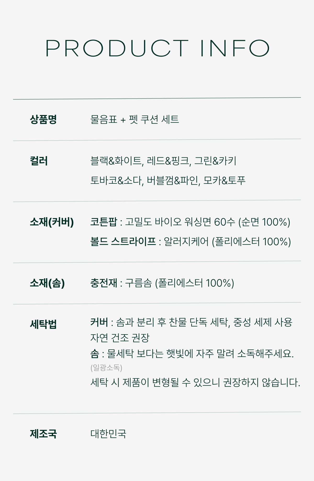 - 펫 쿠션, 물음표 쿠션 모두 솜이 포함된 제품입니다.