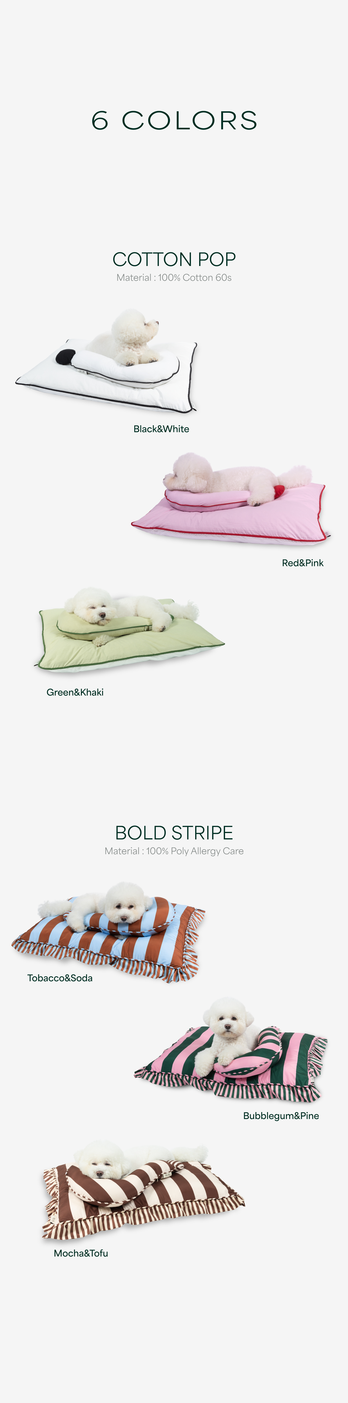 펫 쿠션과 바디 필로우를 함께 사용해 반려동물이 보다 안정감 있게 쉴 수 있도록 도와줍니다. 각 제품은 독립적으로도 사용 가능합니다.