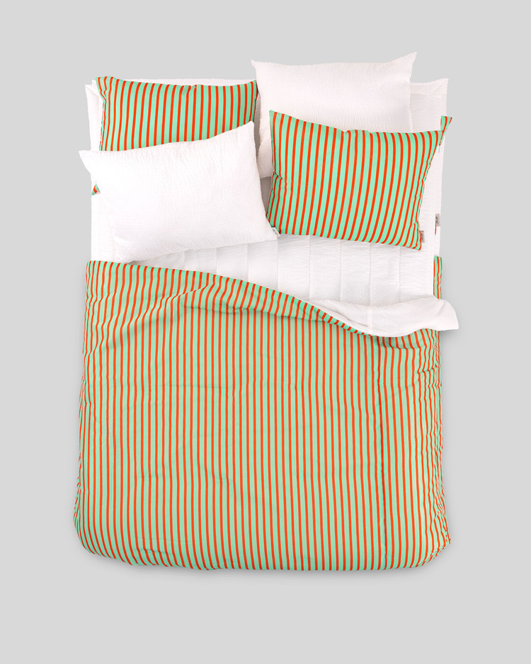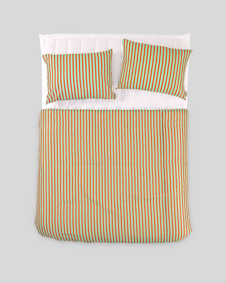 [새제품]써머 브리즈 스트라이프 여름 차렵이불(3온스)+ 베개 커버 세트_Tangerine Wave Q